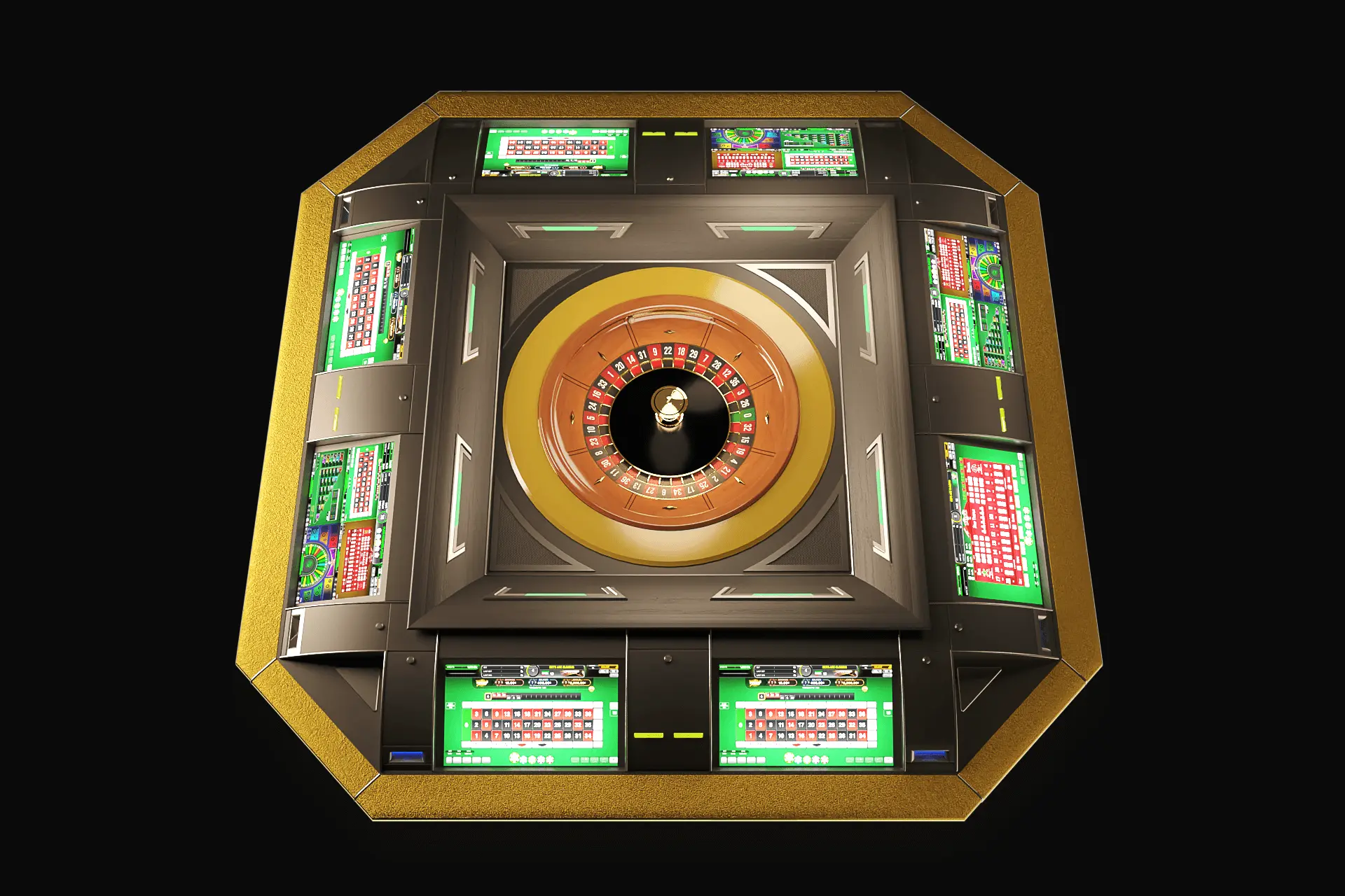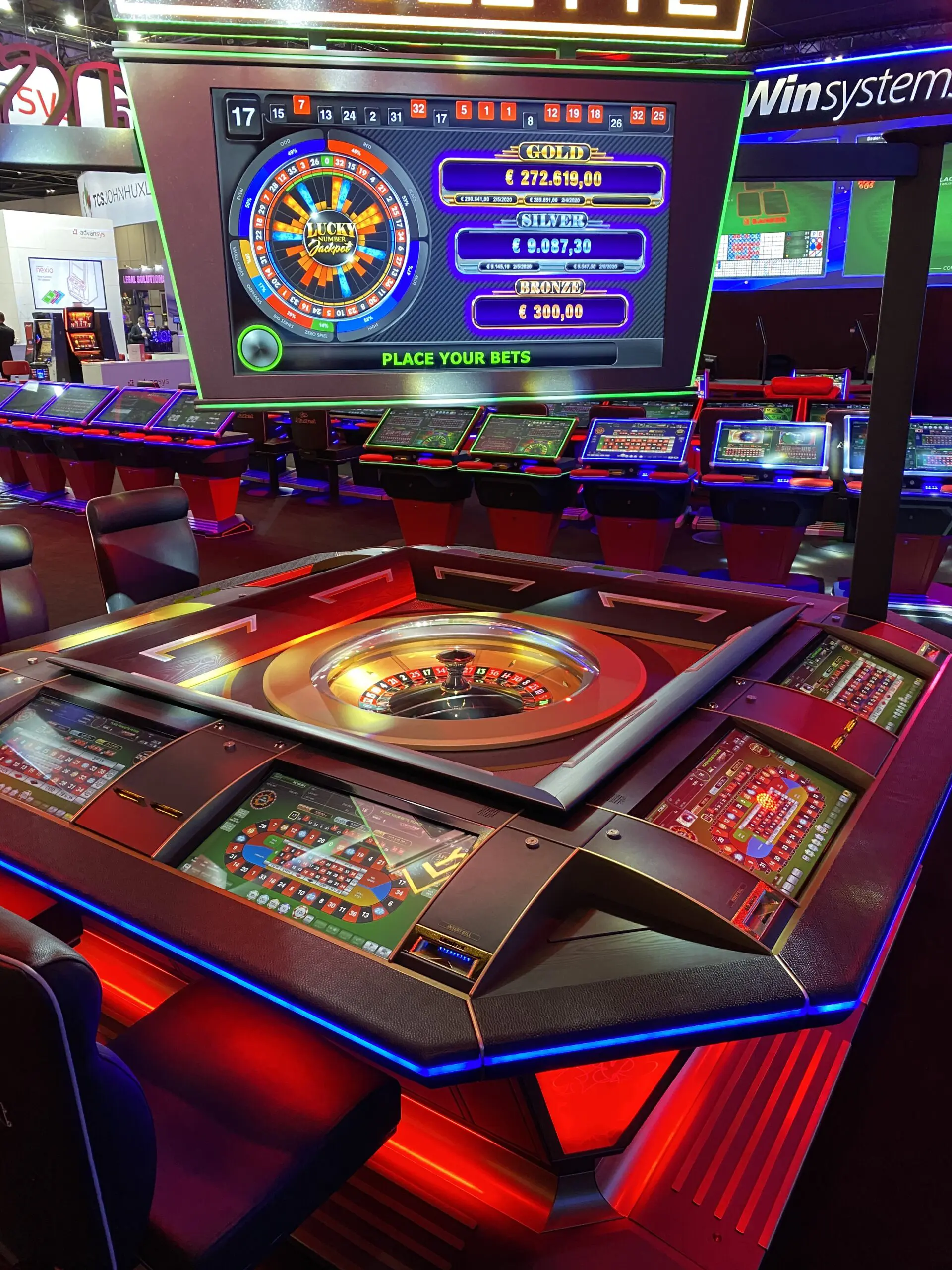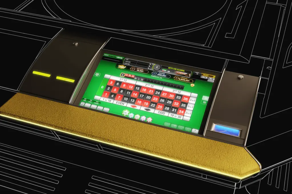 The Alfastreet R8 closely simulates live roulette play by integrating an automated roulette wheel in the center of the table. Brilliant LCD overhead signage and 23-inch LCD touchscreens with crisp graphics at each of the 8 player stations creates an immersive experience that offers simple and intuitive betting with dynamic statistics.